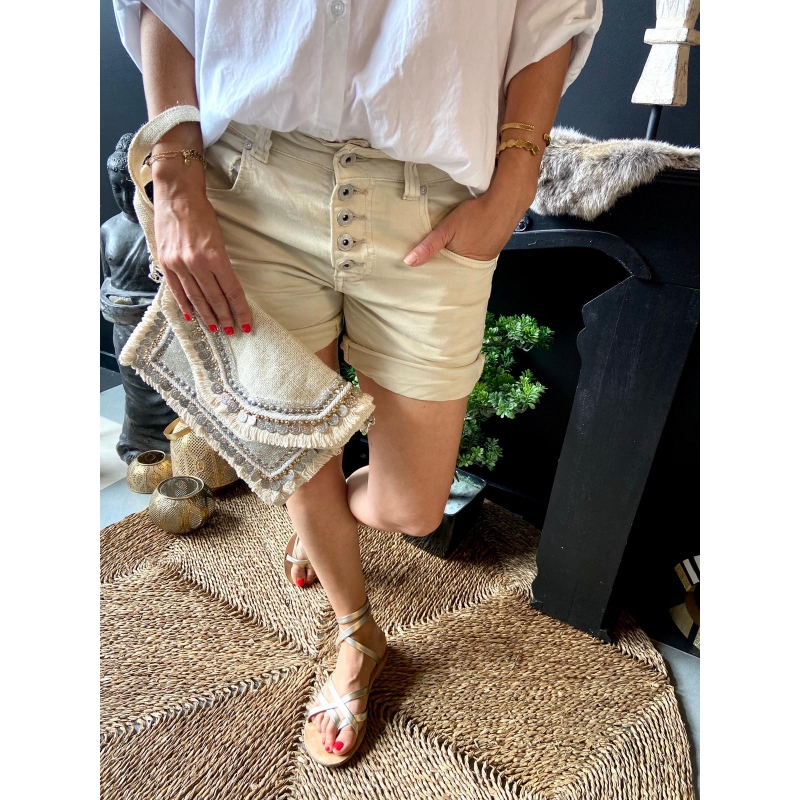 Short en jean beige